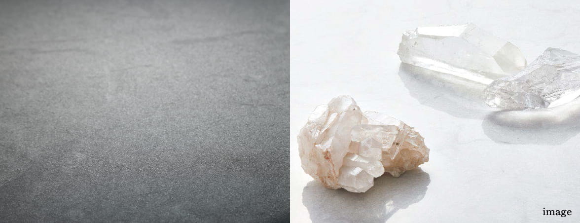 天然水晶※1が主成分の高級人造大理石。天然石の風合いのままに、傷や摩耗に強く、水分、汚れが染み込みにくいので清潔で衛生的。※1:水晶成分とは二酸化珪素SiO2からできている水晶・石英・ガラスなどを示します。※A・B・C・D・Eタイプは人造大理石アクシーマ天板となります。