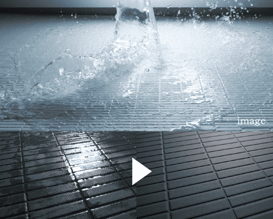 水の表面張力を壊し、乾きやすく、滑りにくくしたフラッグストーンフロアを採用。