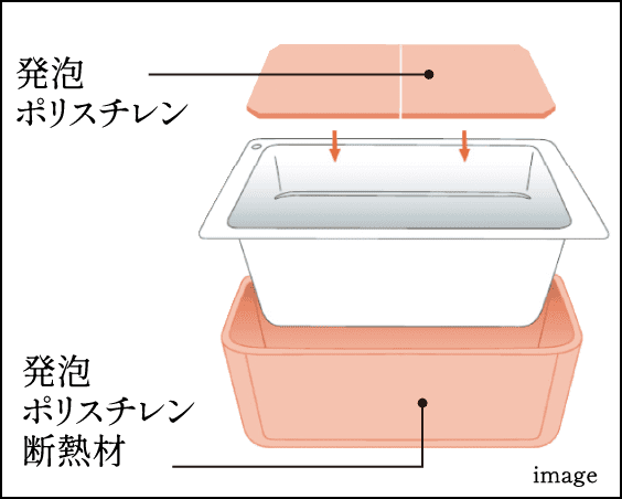 断熱材で浴槽を包み、風呂フタにも断熱材を使用。遅く帰っても、入る時間がバラバラでも、お湯があたたかいままです。