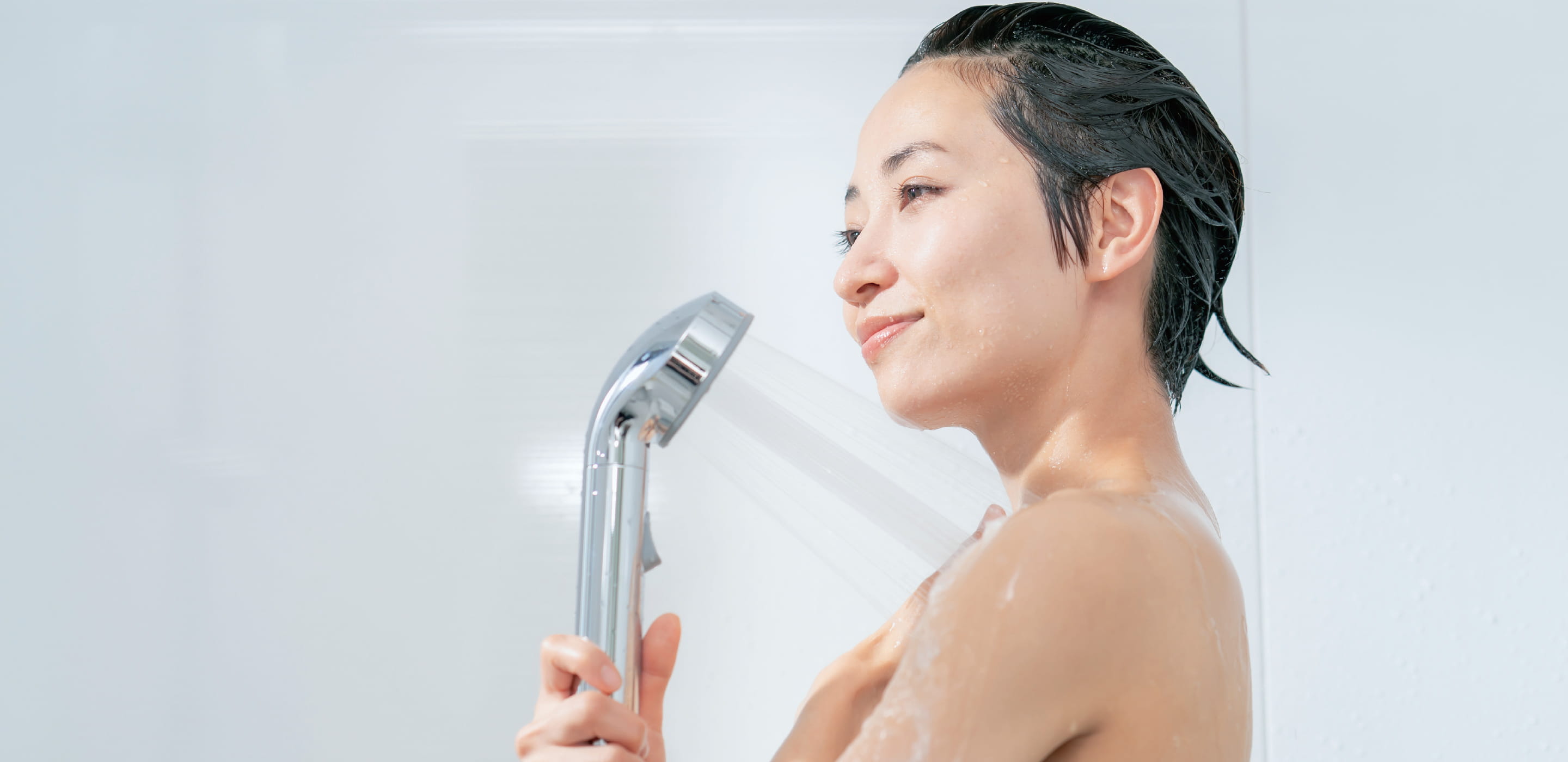 水流とマイクロバブルで、肌表面の皮脂汚れをすっきり除去。マイクロバブルの肌がすみずみまで行き渡り、皮脂汚れに付着。汚れを浮かせて、シャワーの水で押し流します。
