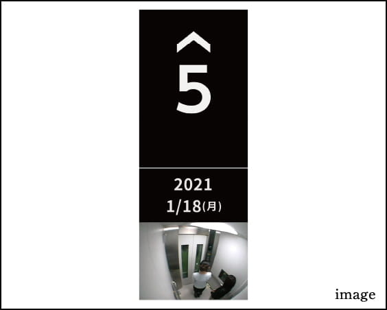 エレベーター内に設置した防犯カメラの映像は、1階エントランスホールの乗場インジケーター液晶モニターに映し出され、内部の様子を確認できるため、防犯効果も高まります。