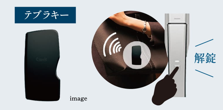 テブラキーをかばんやポケットにしまったまま、認証ボタンを押すだけで施解錠ができます。