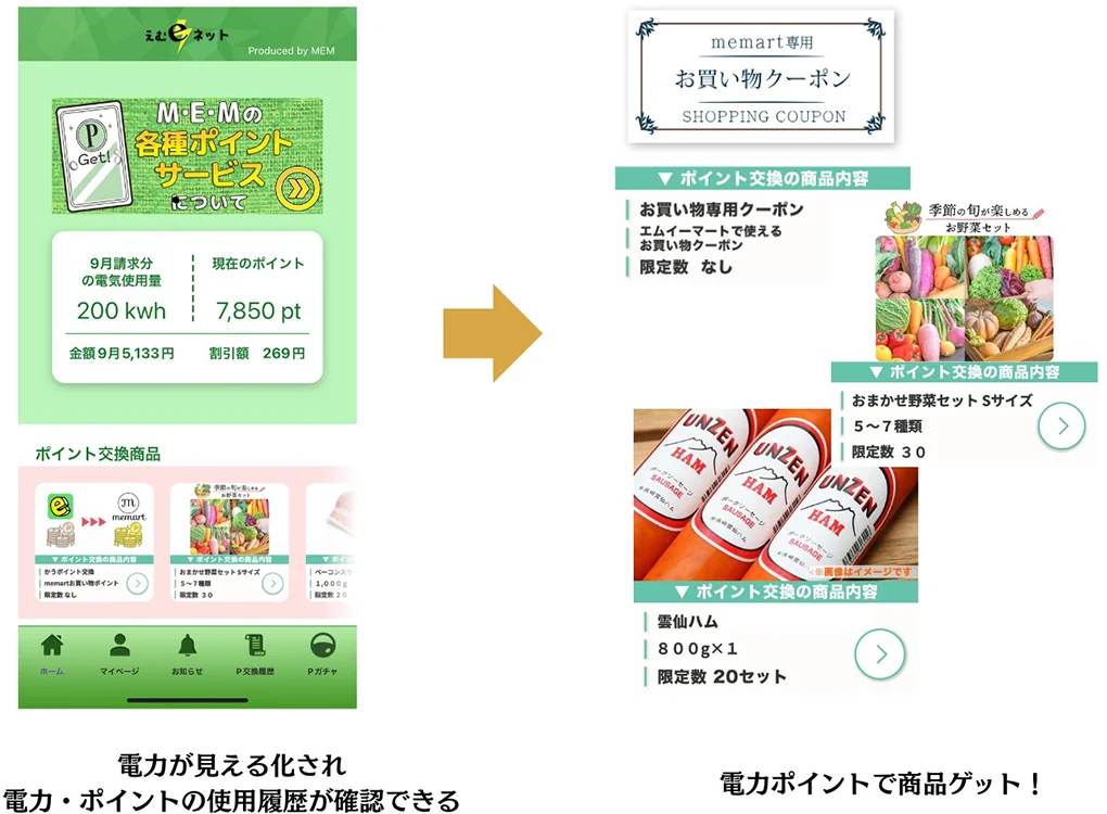 電気料金や電気使用量等を、WEB・アプリを通じていつでもご確認いただけます。「電力一括受電サービス」の割引メリットに加え、節電意識向上で更なる電気料金軽減が可能。さらに、アプリに登録されるとポイントを付与、貯まったポイントをクオカードや様々な商品などに交換できるうれしいサービスも。