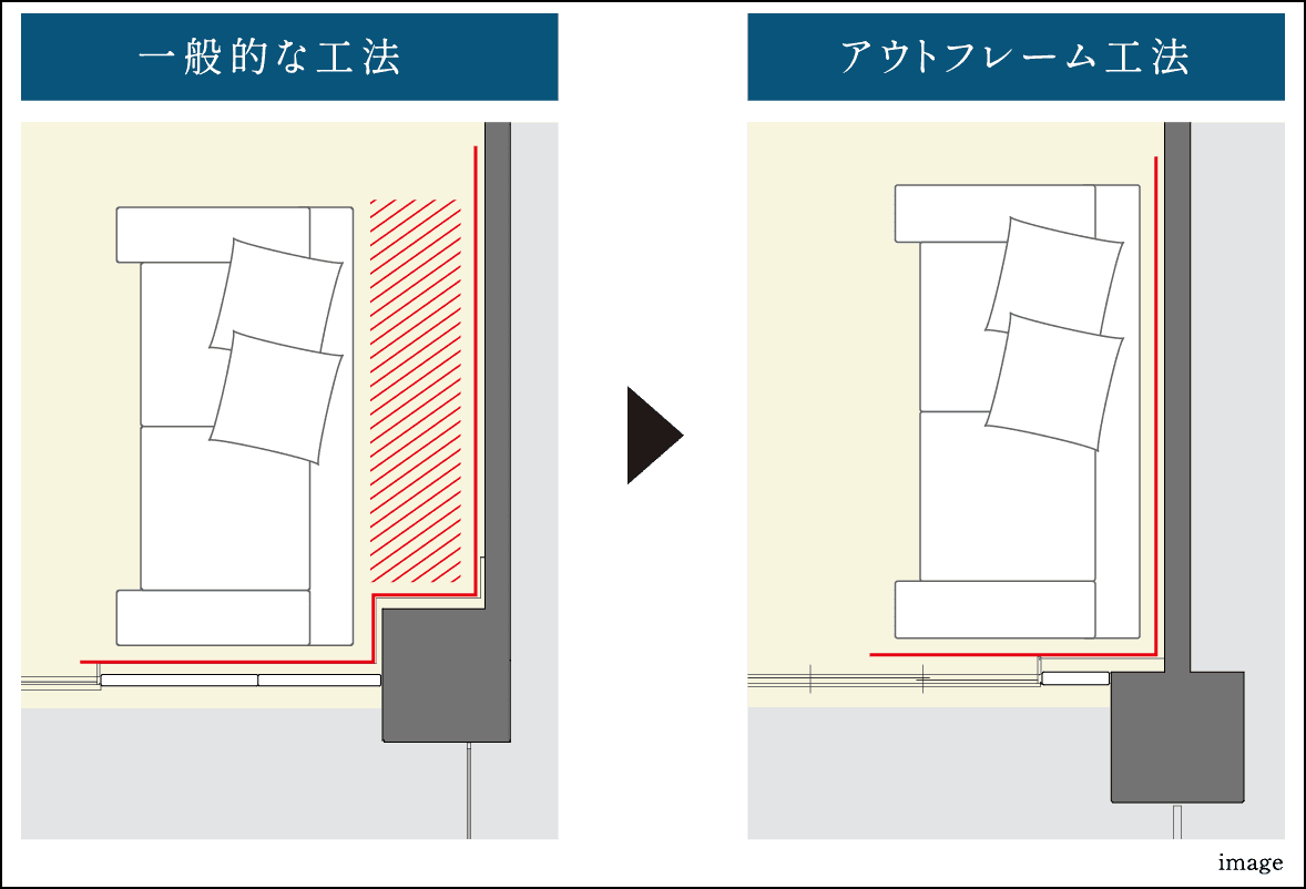 スペースを隅々まで有効に活用することができる 「アウトフレーム設計」採用