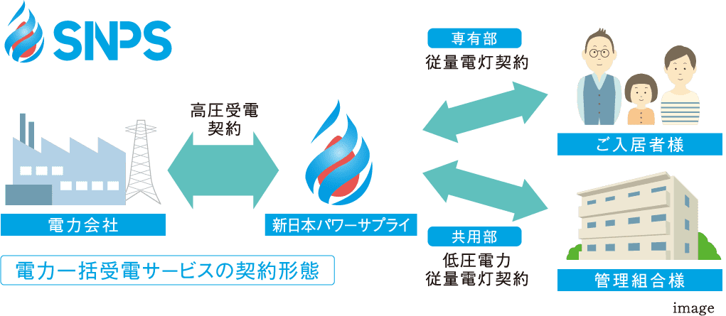 電力の自由化時代に対応して、よりお得な電気サービスが利用できる新日本パワーサプライの電力一括受電サービスを導入。月々の電気代が一律5%の割引になります。 ご入居後の受電設備のメンテナンスや設備の入れ替え等の費用も一切かかりません。毎月欠かせないランニングコストを賢く経済的に抑えることができ、エコノミーな生活を実現します。※詳しくは係員にお尋ねください。
