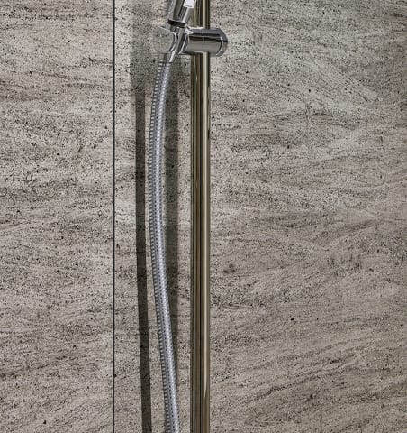 シャワーの高さを使用する人に合わせて自由に調節できるスライドバー。立ったままでも、座ってもちょうど良い高さでシャワーが使えます。