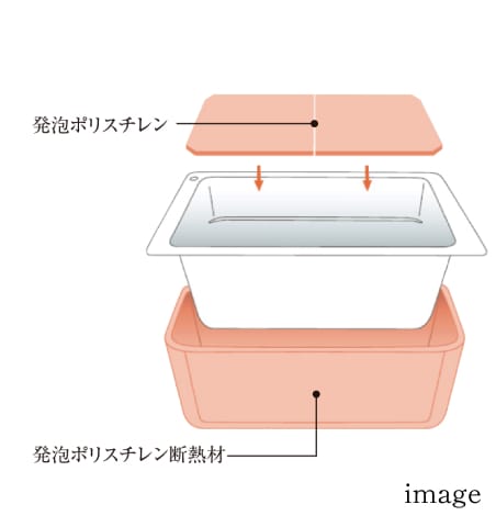 断熱材で浴槽を包み、風呂フタにも断熱材を使用。遅く帰っても、入る時間がバラバラでも、お湯があたたかい。