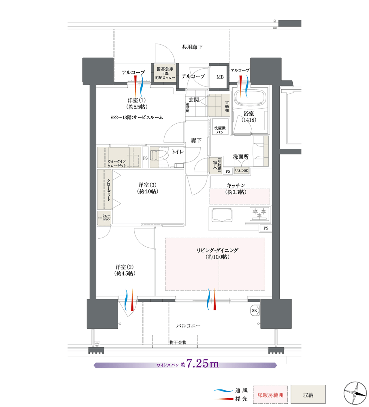 3LDK+SIC+WIC※2〜13階:2LDK+S+SIC+WIC